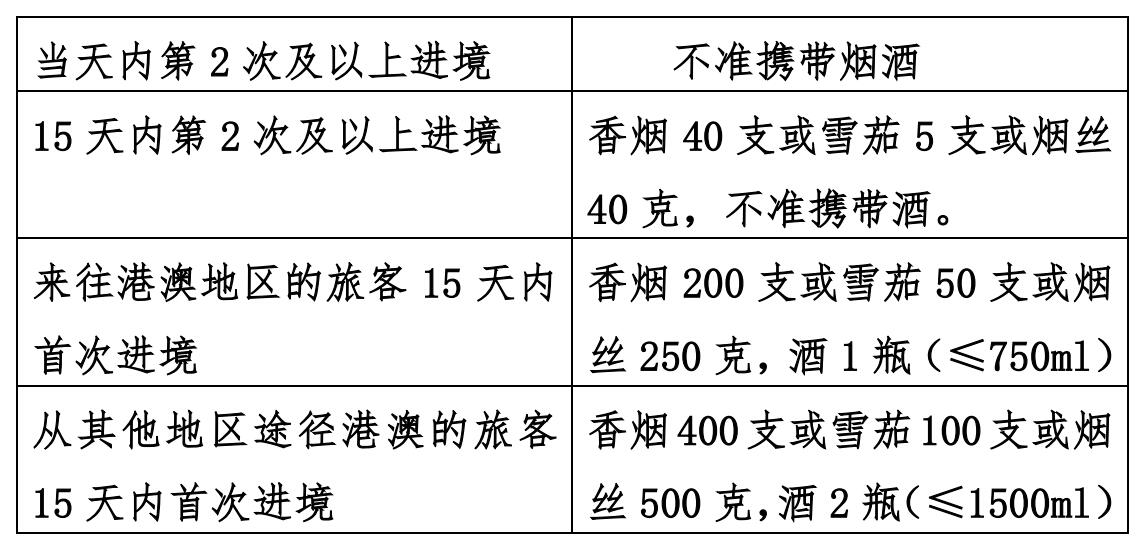 【煙酒限制進(jìn)境的免稅數(shù)量標(biāo)準(zhǔn)】