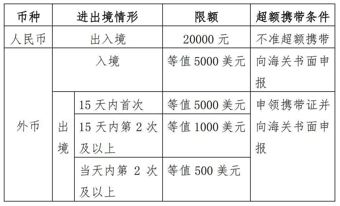 貨幣現(xiàn)鈔屬于國(guó)家限制進(jìn)出境物品,違規(guī)攜帶將被海關(guān)行政處罰。