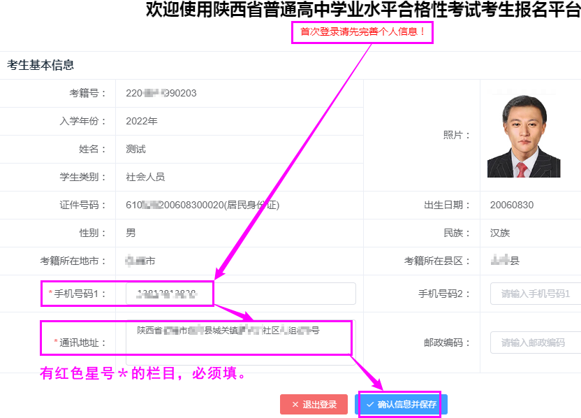 填寫手機號碼、通訊地址后,點擊【確認信息并保存】: