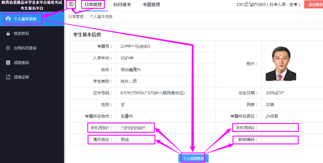 →【個人基本信息】→【個人信息修改】;