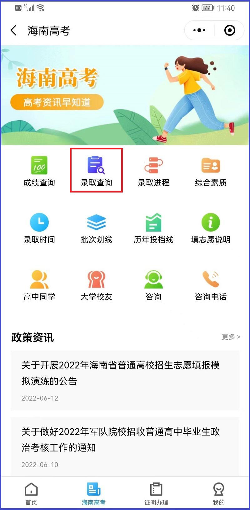 海南省普通高考考生可通過如下渠道查詢錄取結(jié)果: