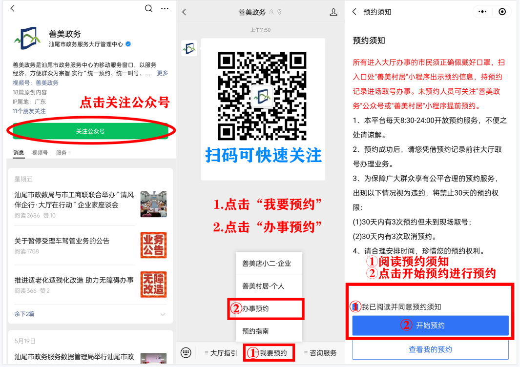 陸豐市政務(wù)服務(wù)中心周六延時(shí)服務(wù)實(shí)行預(yù)約制,群眾須在每周五13:00前在“善美政務(wù)”公眾號(hào)進(jìn)行辦事預(yù)約,超出預(yù)約辦理時(shí)間未到現(xiàn)場(chǎng)辦理的需重新預(yù)約辦理。