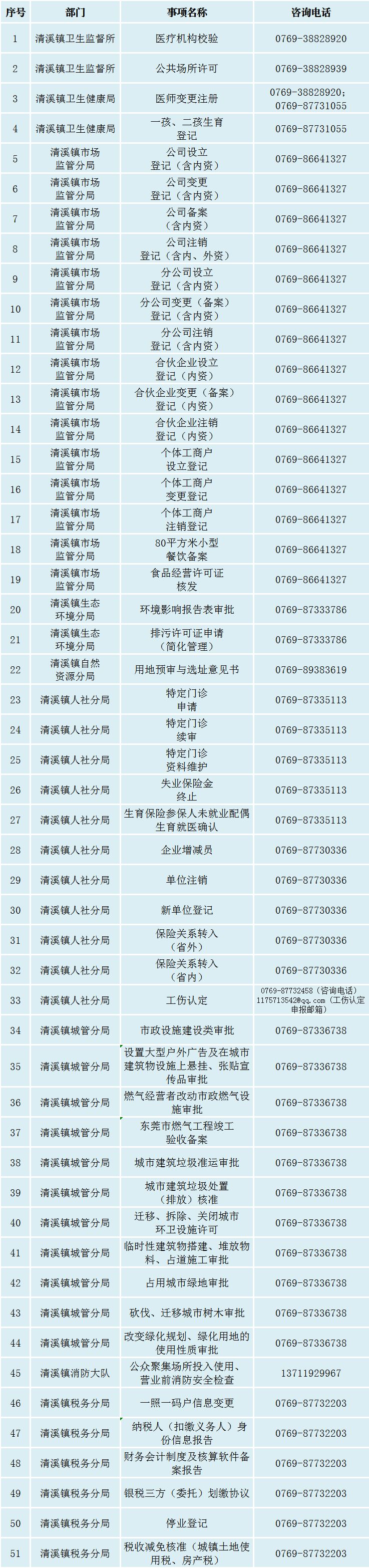 清溪鎮(zhèn)政務(wù)服務(wù)中心衛(wèi)健局窗口咨詢電話:0769-83775955,文化服務(wù)中心窗口咨詢電話:0769-83775939,市場監(jiān)管分局辦事窗口咨詢電話:0769-87322102