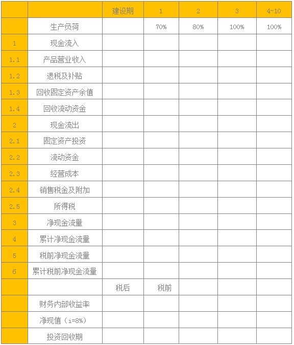 財務(wù)評價是考察項目建成后的獲利能力、債務(wù)償還能力及外匯平衡能力的財務(wù)狀況,以判斷建設(shè)項目在財務(wù)上的可行性。財務(wù)評價多用靜態(tài)分析與動態(tài)分析相結(jié) 合,以動態(tài)為主的辦法進(jìn)行。并用財務(wù)評價指標(biāo)分別和相應(yīng)的基準(zhǔn)參數(shù)——財務(wù)基準(zhǔn)收益率、行業(yè)平均投資回收期、平均投資利潤率、投資利稅率相比較,以判斷項 目在財務(wù)上是否可行。