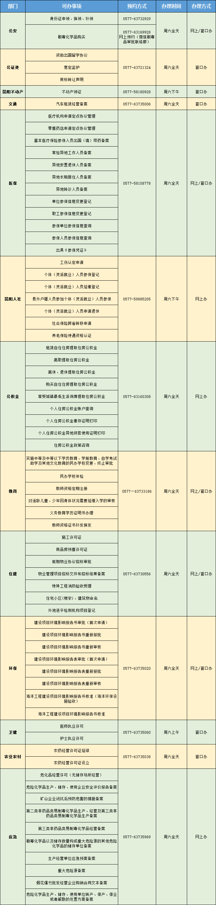 平陽縣政務(wù)服務(wù)中心周六“預(yù)約辦”事項(xiàng)清單