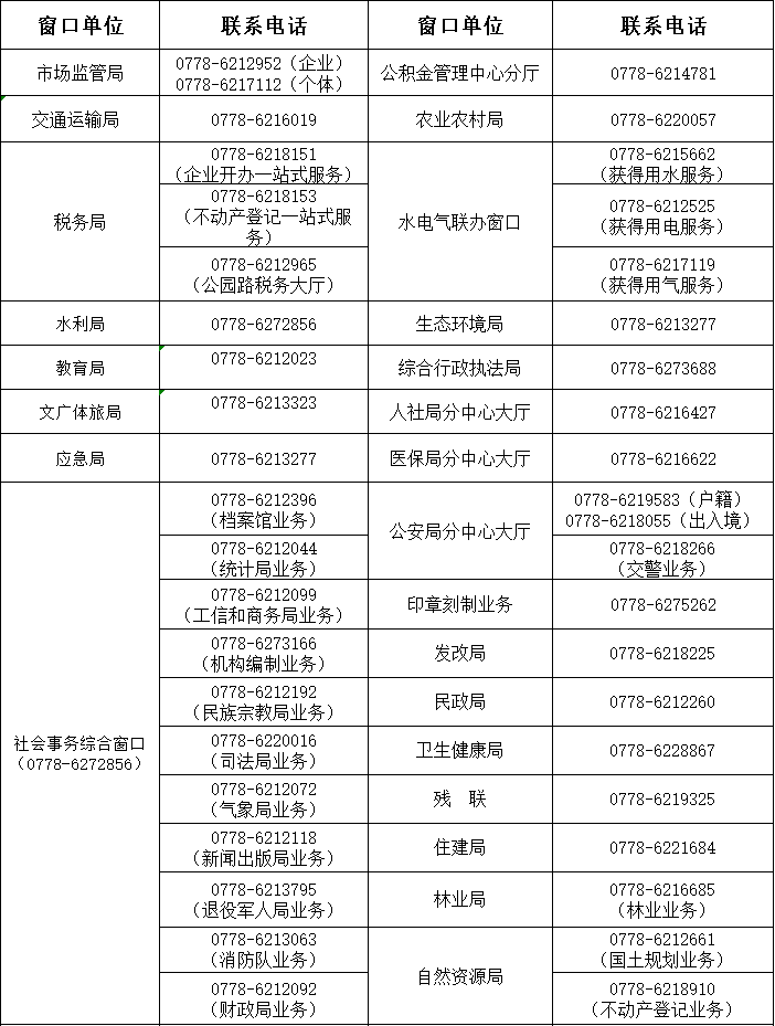 咨詢電話:0778-6212033 ,納稅咨詢電話 0778-6212965