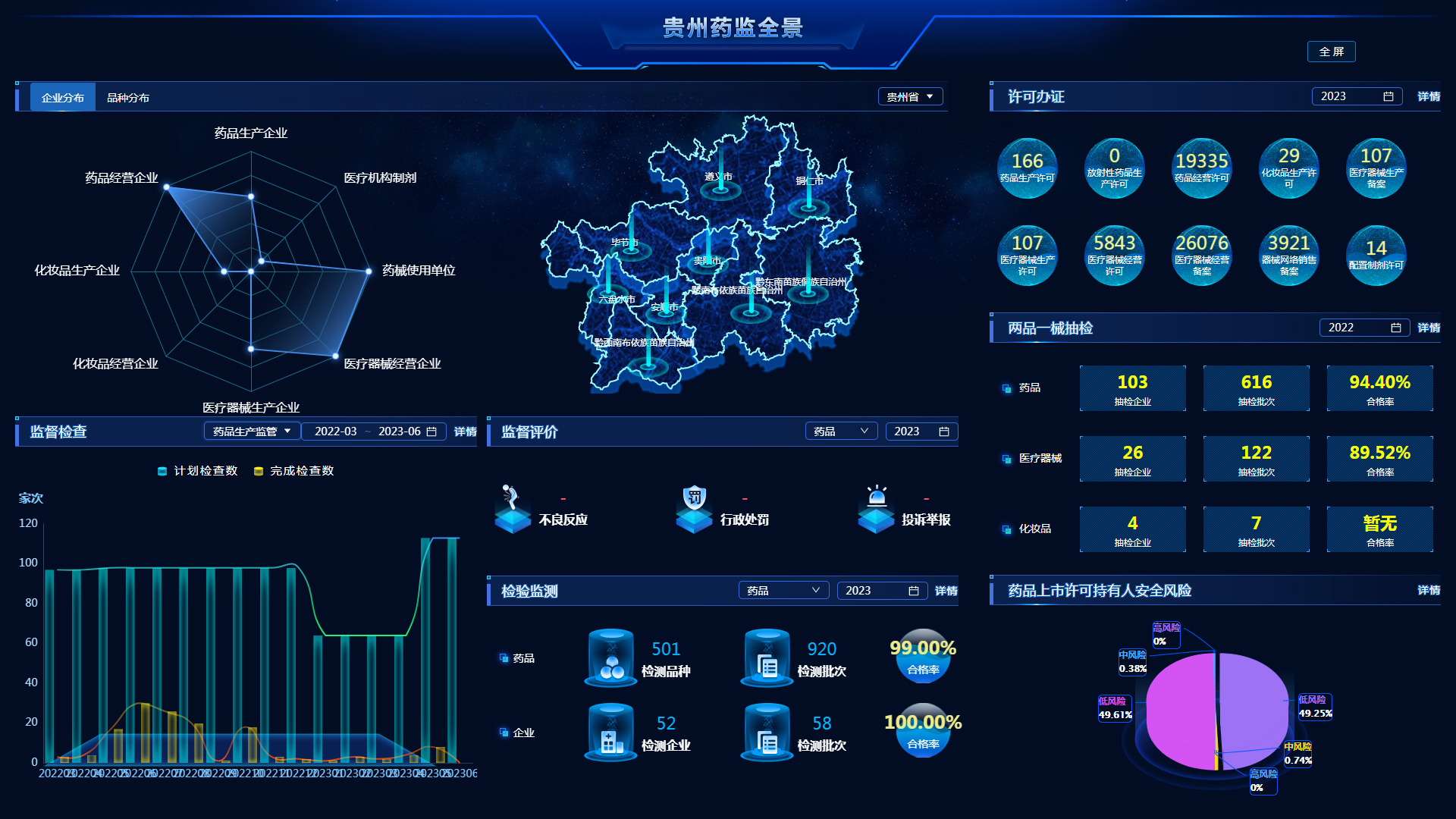 為貫徹落實習近平總書記關(guān)于藥品監(jiān)管工作重要指示批示精神,國務院辦公廳關(guān)于全面加強藥品監(jiān)管能力建設(shè)的實施意見有關(guān)要求,貴州省藥監(jiān)局加快推進藥品智慧監(jiān)管,建成貴州藥監(jiān)綜合監(jiān)管平臺。實現(xiàn)全省藥品監(jiān)管機構(gòu)和用戶的統(tǒng)一管理,以及業(yè)務系統(tǒng)的統(tǒng)一認證登錄,形成全省藥品智慧監(jiān)管一體化管理體系;實現(xiàn)監(jiān)督檢查全流程數(shù)字化管理和業(yè)務閉環(huán);實現(xiàn)許可(備案)、監(jiān)管檢查、抽樣檢驗、監(jiān)測評價、數(shù)據(jù)中心之間各業(yè)務模塊數(shù)據(jù)共享和業(yè)務協(xié)同,強化事前事中事后監(jiān)管;探索“兩品一械”大數(shù)據(jù)應用分析,強化數(shù)據(jù)分類分析展示,充分發(fā)揮藥品監(jiān)管數(shù)據(jù)價值。提升智慧監(jiān)管能力,落實精準監(jiān)管;提高服務質(zhì)量,提升政府形象;強化數(shù)據(jù)資源管理,提高數(shù)據(jù)資源利用率;筑牢數(shù)字基礎(chǔ)底座,完善系統(tǒng)生態(tài)。為高質(zhì)量監(jiān)管提供精準服務,以信息化引領(lǐng)藥品監(jiān)管現(xiàn)代化,努力開創(chuàng)藥品智慧監(jiān)管新局面。