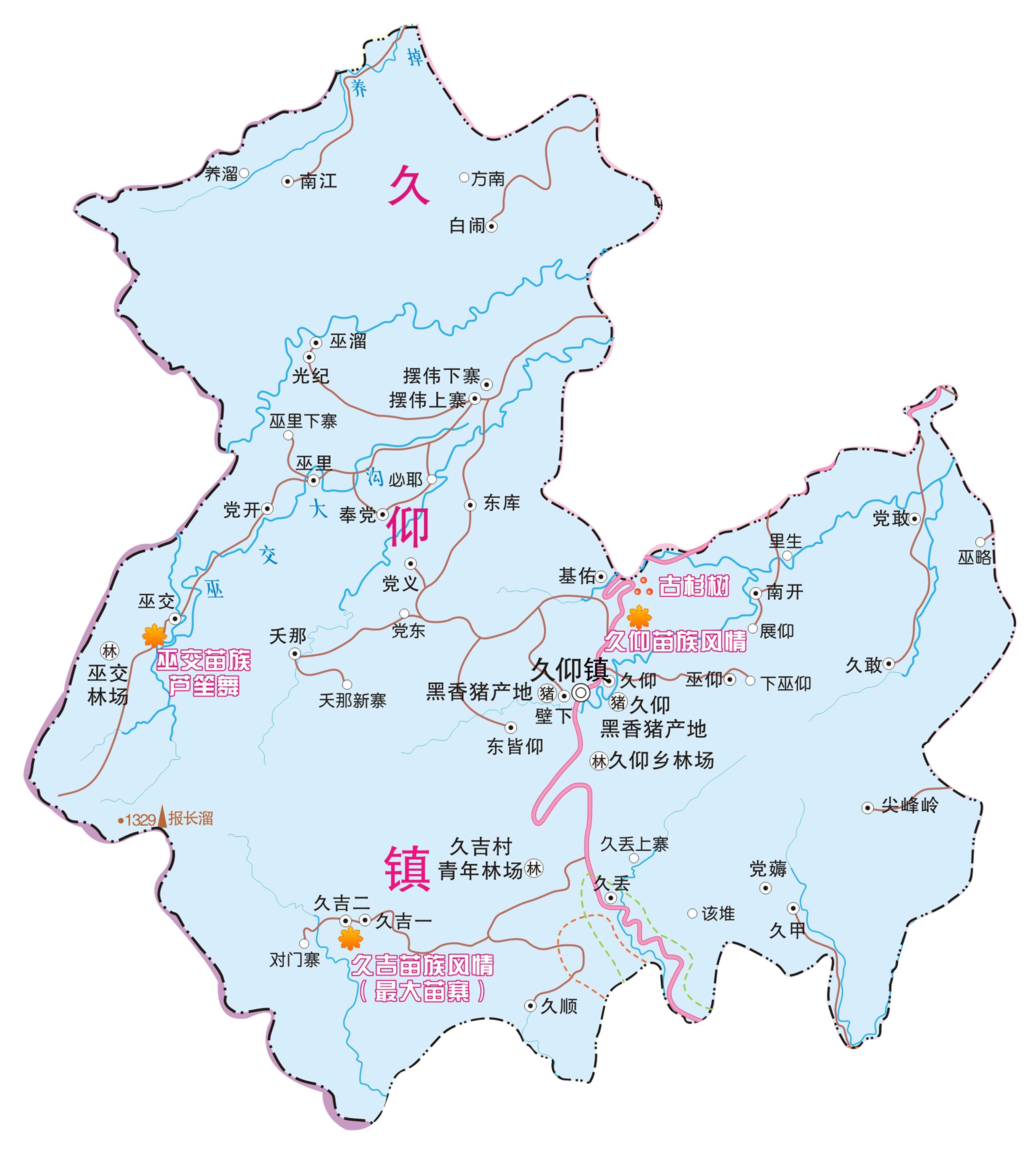 久仰鎮(zhèn)地處雷公山麓,位于貴州省黔東南州中部,劍河縣西南部,距縣城45公里,東臨柳川鎮(zhèn),南接南哨鎮(zhèn),西倚臺(tái)江縣方召、南宮兩鄉(xiāng)鎮(zhèn),北毗革東鎮(zhèn),行政區(qū)域面積161平方公里,耕地面積2.23萬畝,林地面積23萬畝。全鎮(zhèn)共轄17個(gè)行政村,188個(gè)村民小組,4922戶2.2萬人。目前有建卡戶1784戶7645人,其中:脫貧戶1600戶6864人,監(jiān)測(cè)戶260戶1100人(脫貧不穩(wěn)定戶68戶282人、邊緣易致貧戶172戶734人、突發(fā)嚴(yán)重困難戶20戶84人)。2005年鎮(zhèn)政府搬遷重建,2008年底實(shí)現(xiàn)集鎮(zhèn)開市趕集。久仰鎮(zhèn)有著得天獨(dú)厚的自然環(huán)境優(yōu)勢(shì)和區(qū)位優(yōu)勢(shì),處在劍河縣百里原始闊葉林景區(qū)精品旅游線路的中樞節(jié)點(diǎn)上,854縣道(劍太線)穿境而過,境內(nèi)青山碧水,綠樹成蔭,氣候宜人,素有避暑之鄉(xiāng)美稱,似畫如詩(shī)的自然風(fēng)光令人心曠神怡、流連忘返。特別是獨(dú)有的黑香豬、朝天椒更是吸引縣內(nèi)外人士的青睞;悠久、古樸、濃厚的民族民間文化,為打造民族旅游鄉(xiāng)村不可或缺的特色資源。