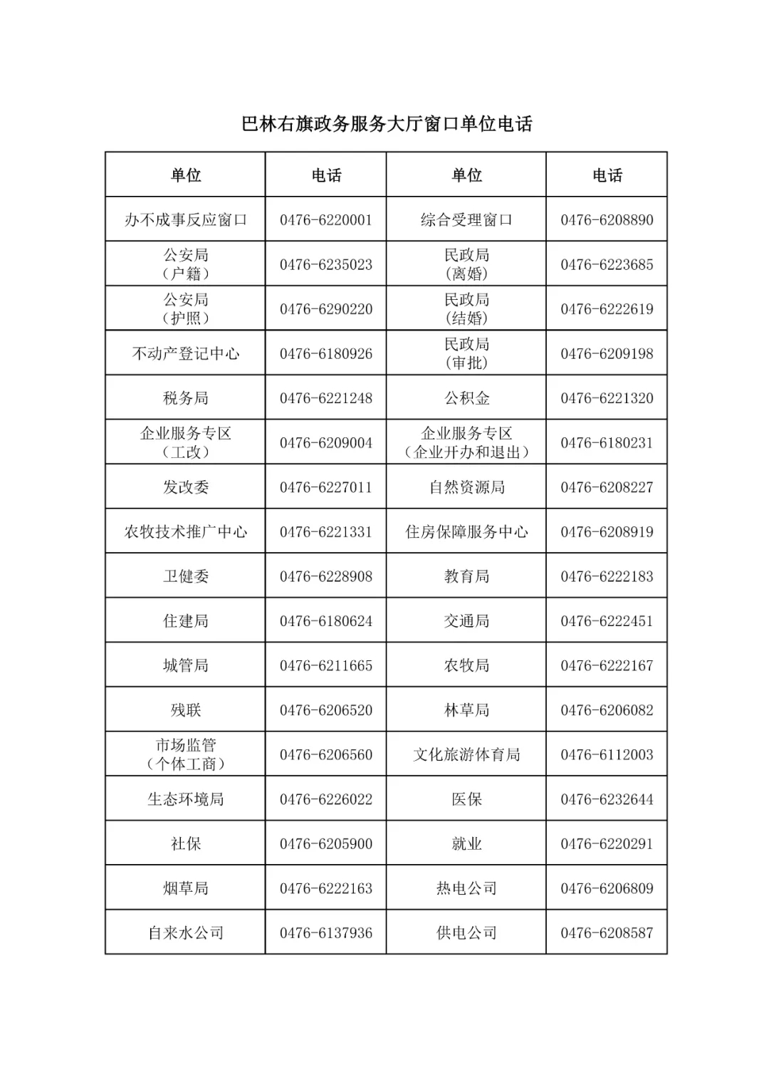 為深化落實“服務(wù)質(zhì)效提升行動”暢通政企、干群互動渠道做到政務(wù)服務(wù)“有咨詢、能預(yù)約、快辦成”現(xiàn)將政務(wù)服務(wù)大廳各窗口電話更新如下,