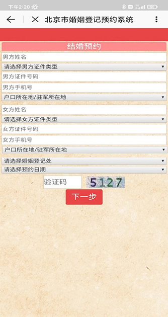 (3)進入北京市婚姻登記預(yù)約系統(tǒng),點擊"結(jié)婚登記"(圖5);