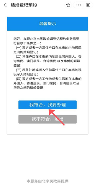 (3)進入相關(guān)界面,點擊"我符合,我要辦理"(圖10),填選界面內(nèi)表單完成預(yù)約。