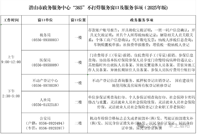 為方便廣大市民在潛山市政務(wù)中心高效有序辦理相關(guān)業(yè)務(wù),避免多跑路的狀況發(fā)生,95商服網(wǎng)小編特地將各單位窗口咨詢電話總結(jié)歸納如下: