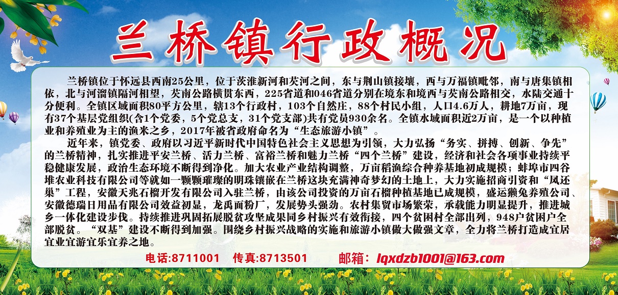 辦公地址:蚌埠市懷遠(yuǎn)縣蘭橋鎮(zhèn)人民政府, 郵編:233423
