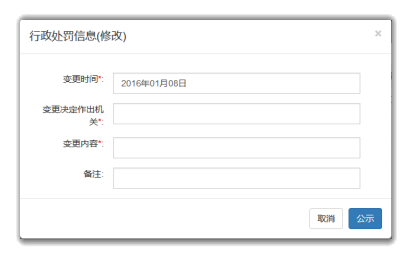 行政處罰信息在發(fā)生變更后需要添加相應信息并公示。