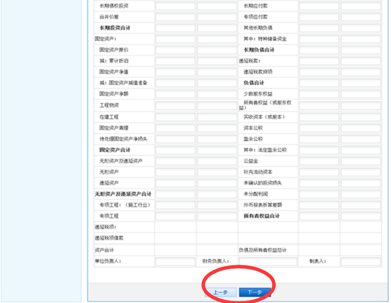 第七步:資產(chǎn)負(fù)債表,認(rèn)真錄入并檢查資產(chǎn)負(fù)債數(shù)據(jù)后,點(diǎn)擊【下一步】按鈕。