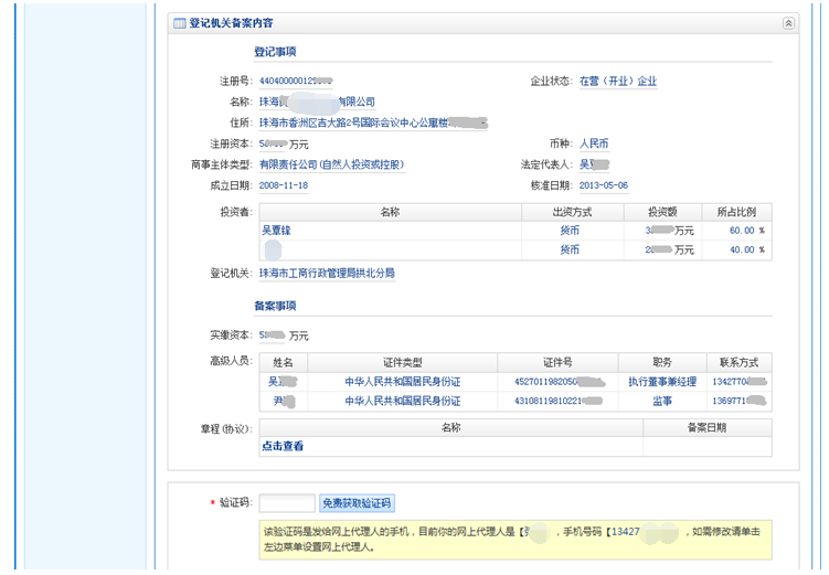 第九步:認(rèn)真檢查確認(rèn)本次年度報(bào)告申報(bào)的內(nèi)容后,點(diǎn)擊【免費(fèi)獲取驗(yàn)證碼】獲取的驗(yàn)證碼,該驗(yàn)證碼是發(fā)給網(wǎng)上代理人的手機(jī),目前你的網(wǎng)上代理人是【XXX】,手機(jī)號(hào)碼【XXXX】,如需修改請(qǐng)單擊左邊菜單設(shè)置網(wǎng)上代理人,輸入驗(yàn)證碼后點(diǎn)擊【確認(rèn)提交】按鈕,年度報(bào)告申報(bào)提交完成。