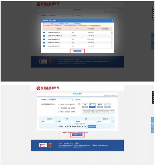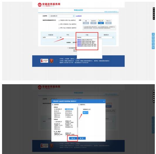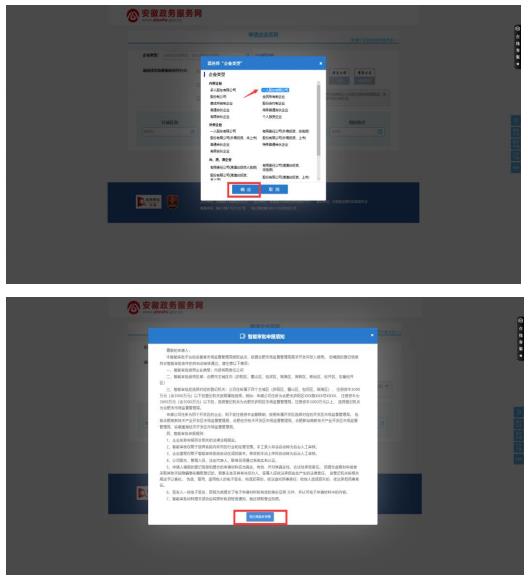 2. 點(diǎn)擊企業(yè)類型,選擇要開辦的企業(yè)類型,點(diǎn)擊確定,然后點(diǎn)擊我已閱讀并同意。