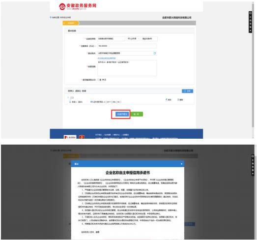 7. 選擇完成并提交,點(diǎn)擊” 我已閱讀并同意“,然后確定,名稱自主申報(bào)完成。