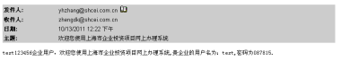 注冊成功后從注冊郵箱或者手機(jī)短信獲得賬戶密碼,如下所示:
