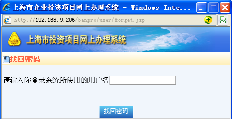 (4) 點(diǎn)擊“政務(wù)大廳”-“上海市投資項(xiàng)目網(wǎng)上辦理系統(tǒng)”,即或直接在IE瀏覽器的地址欄內(nèi)輸入http://222.66.64.156/banpro,進(jìn)入系統(tǒng),登錄界面如下圖所示: