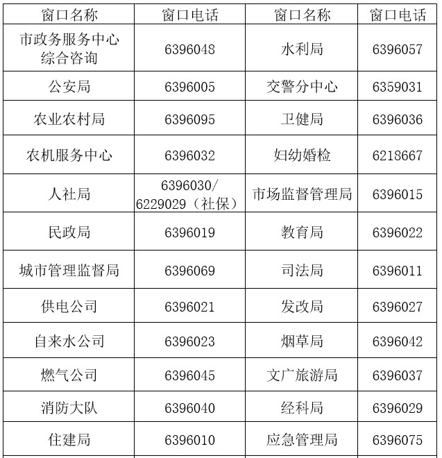 北流市政務(wù)服務(wù)中心各服務(wù)窗口電話