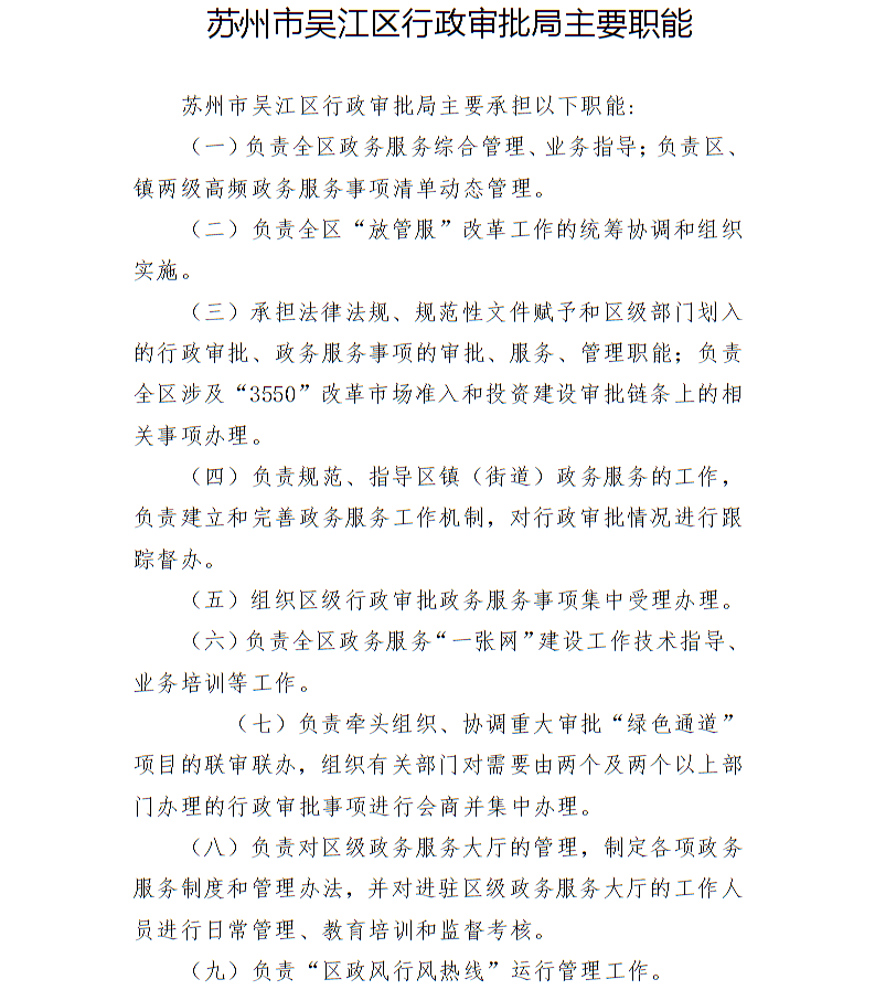 蘇州市吳江區(qū)行政審批局領(lǐng)導分工
