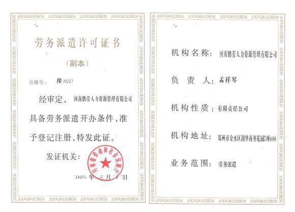 《勞務(wù)派遣經(jīng)營許可證》由人力資源社會(huì)保障部統(tǒng)一制定樣式,由各省、自治區(qū)、直轄市人力資源社會(huì)保障行政部門負(fù)責(zé)印制、免費(fèi)發(fā)放和管理。