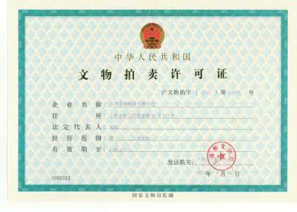 文物拍賣許可證,是中國國家文物局頒發(fā)的文物拍賣經(jīng)營資質(zhì)。