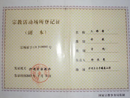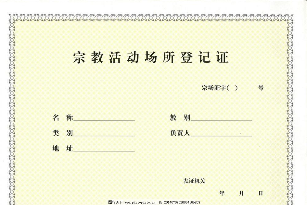 第十條 《宗教活動場所登記證》和有關(guān)表格,由各省、自治區(qū)、直轄市人民政府宗教事務(wù)部門按照國家宗教事務(wù)局制定的式樣印制。