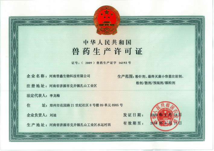 (二)證書發(fā)放。《獸藥GMP證書》和《獸藥生產(chǎn)許可證》核發(fā)原則為:一家獸藥生產(chǎn)企業(yè)原則上持有一張《獸藥GMP證書》和一張《獸藥生產(chǎn)許可證》;對同時具有獸用生物制品和獸用化學(xué)藥品(中藥)生產(chǎn)線的,核發(fā)一張《獸藥生產(chǎn)許可證》,并分別核發(fā)獸用生物制品、獸用化學(xué)藥品(中藥)《獸藥GMP證書》。